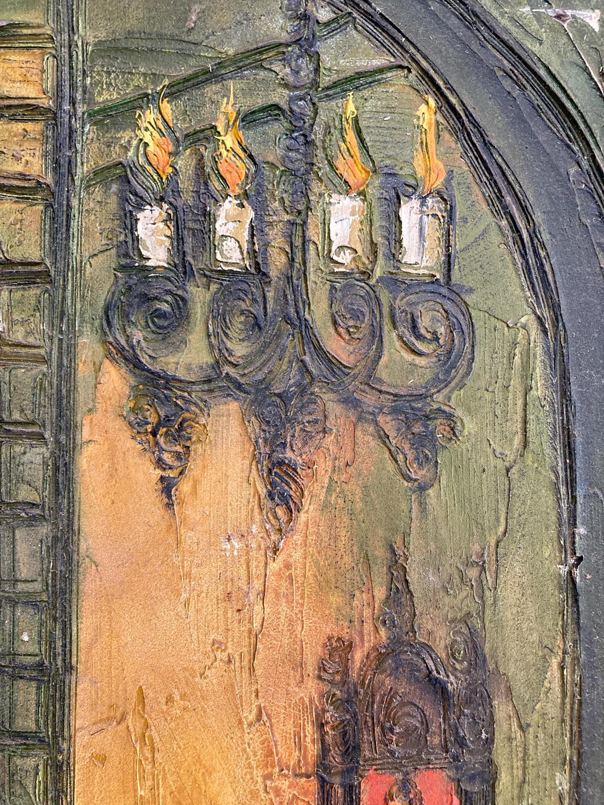 Large Mid-Century Framed Original Gothic Oil Painting by Etta Benjamin Cien