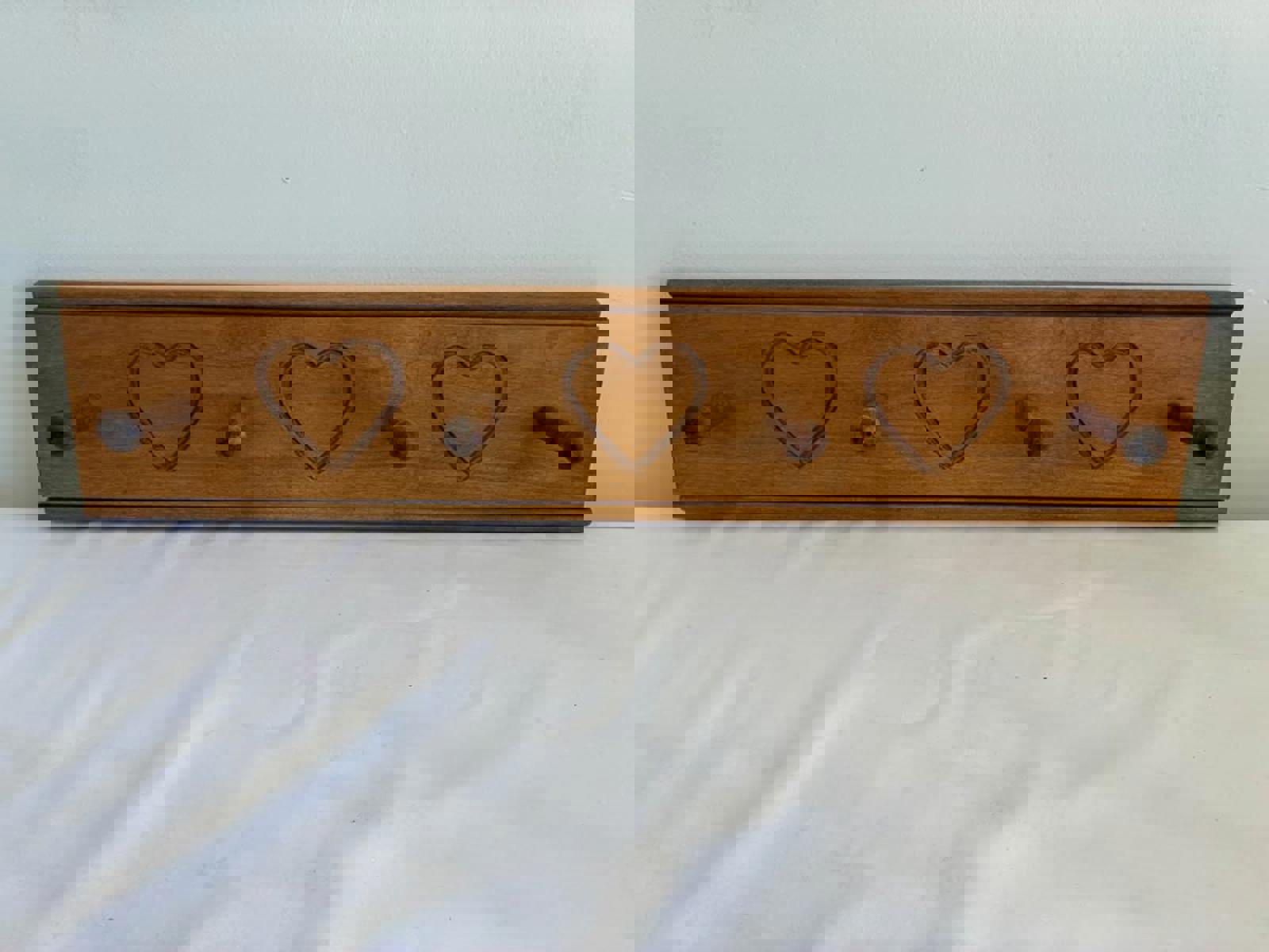 Longaberger Wooden Wall Peg Rack with Hearts, Farmhouse Coat Hook Rustic Country