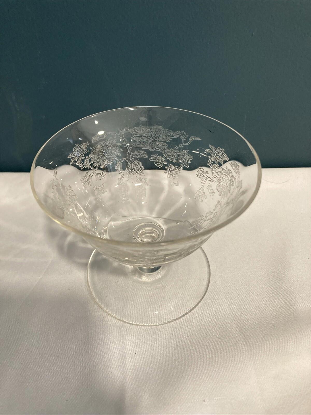 Tiffin Etched Rose Sherbet Dessert Dish, Set of 3, Vintage Floral Dish
