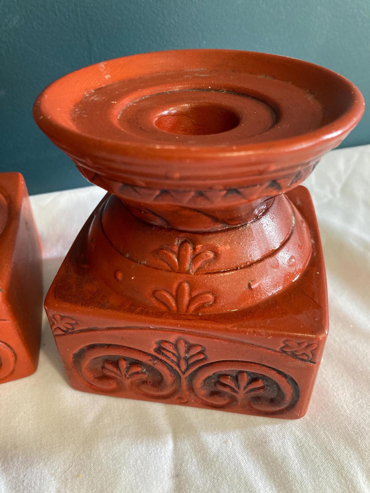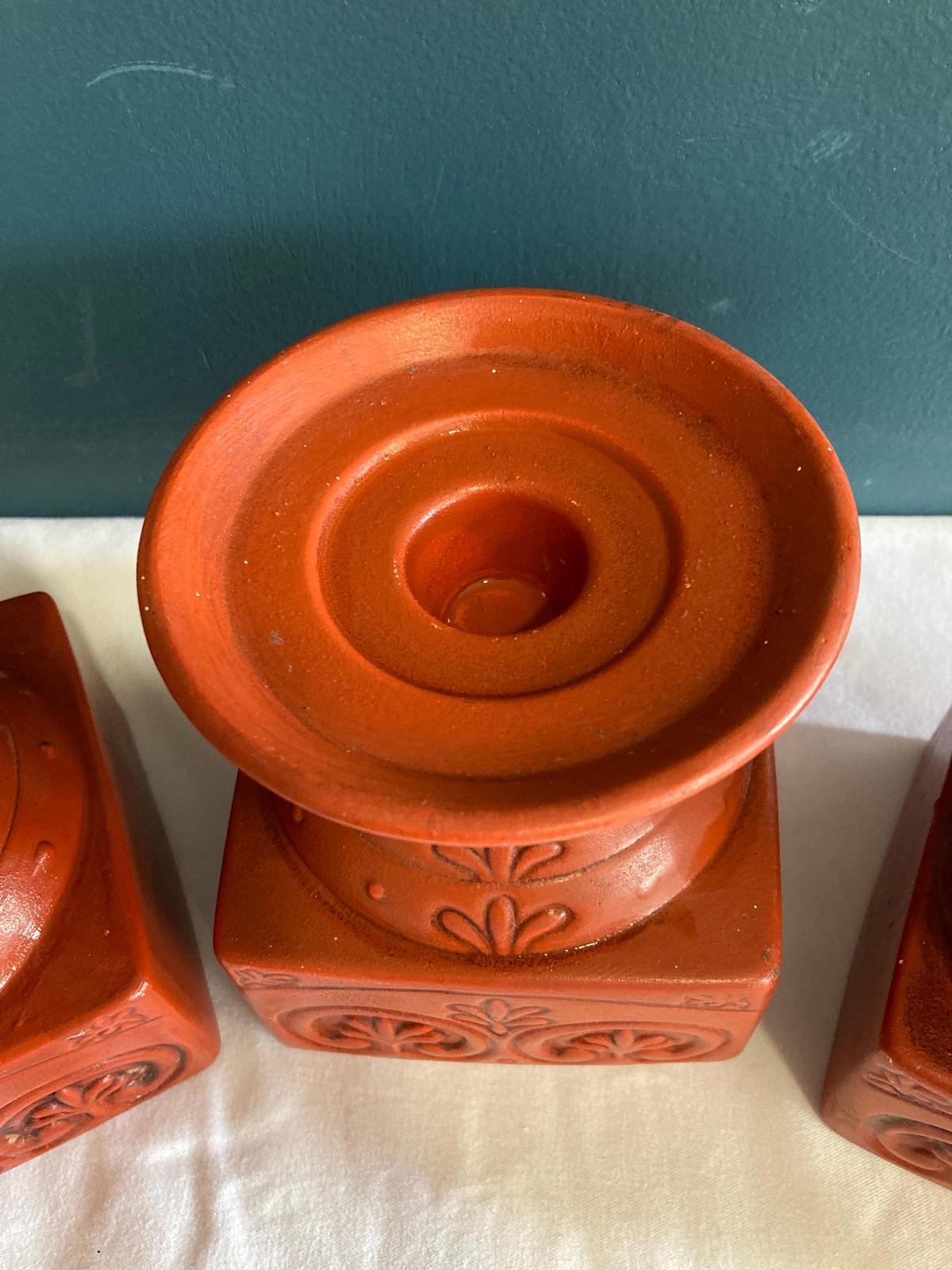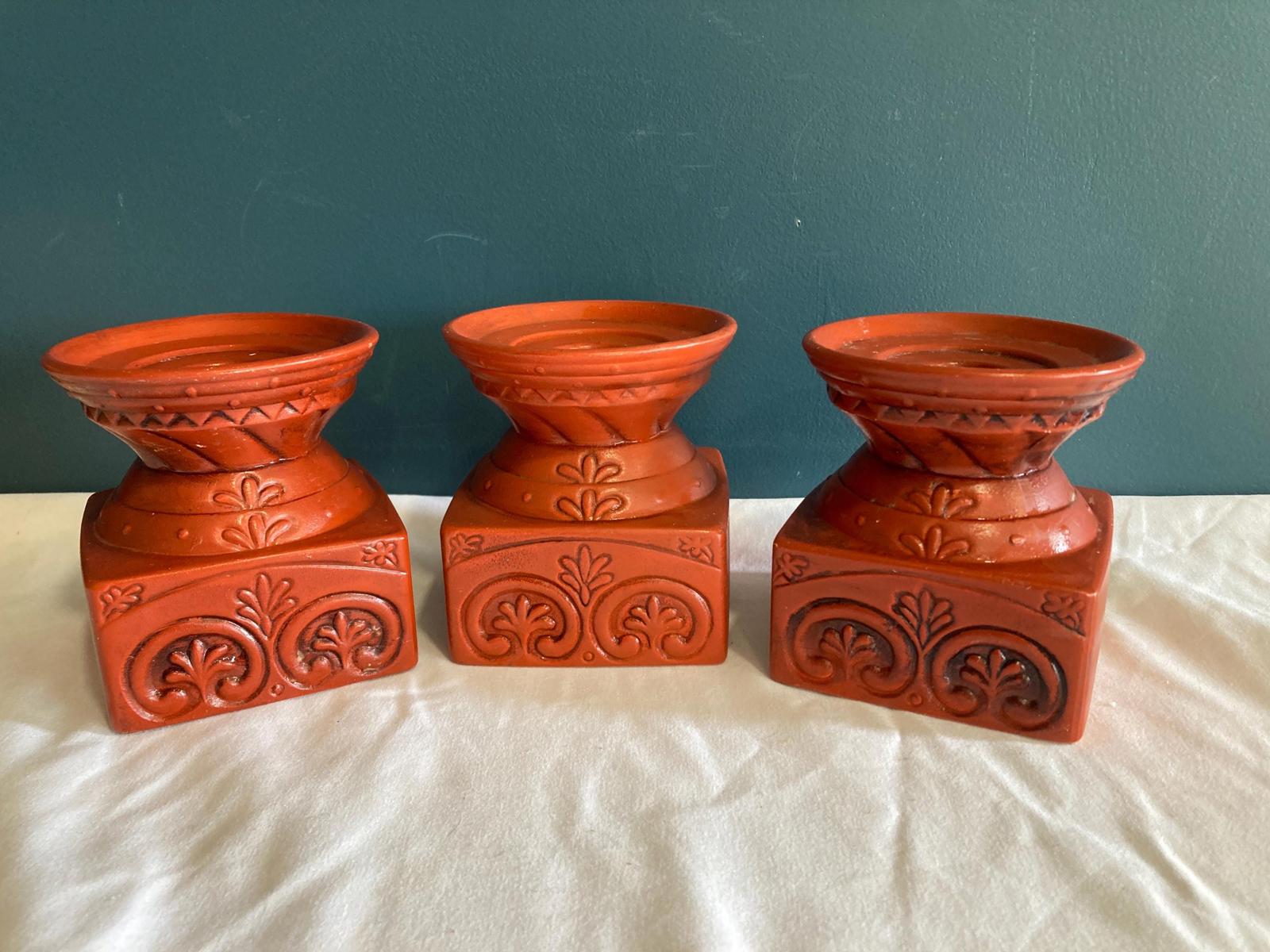 Vintage Brick Red Ceramic Candle Holder Stands, set of 3
