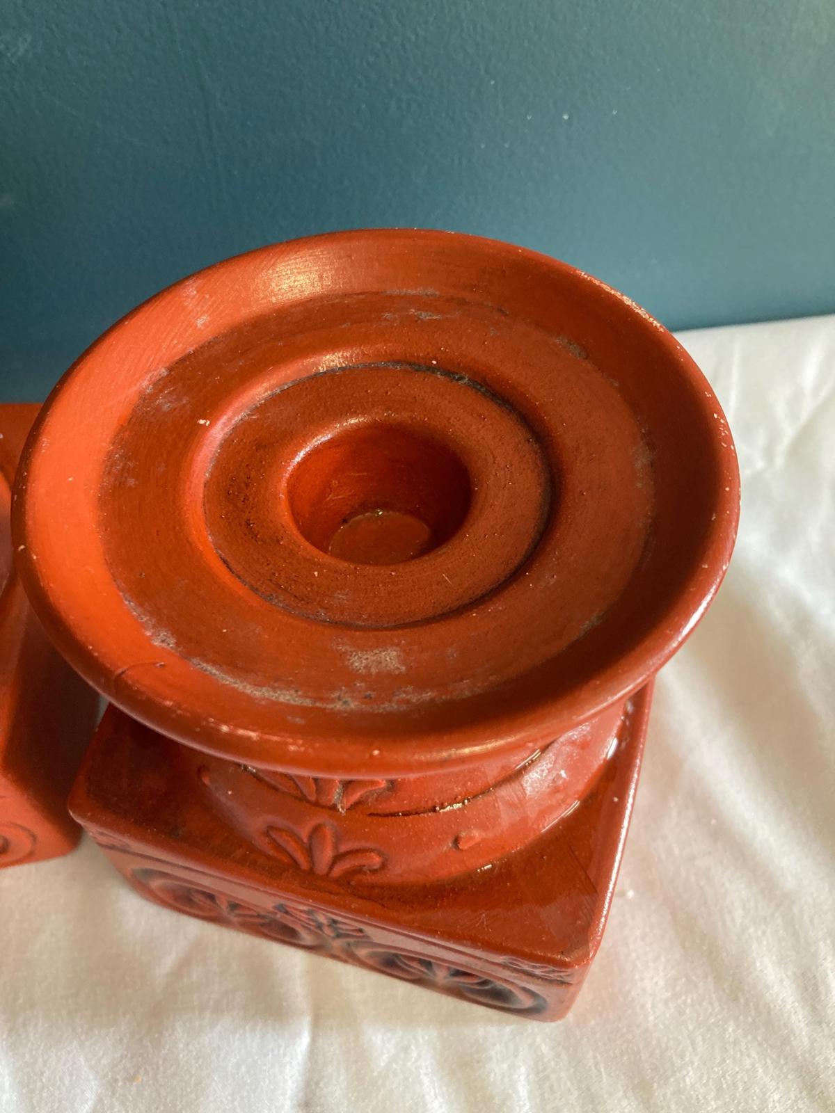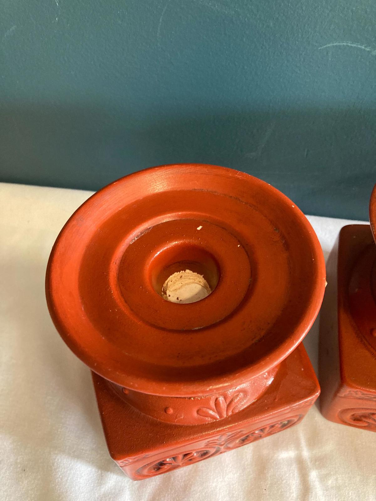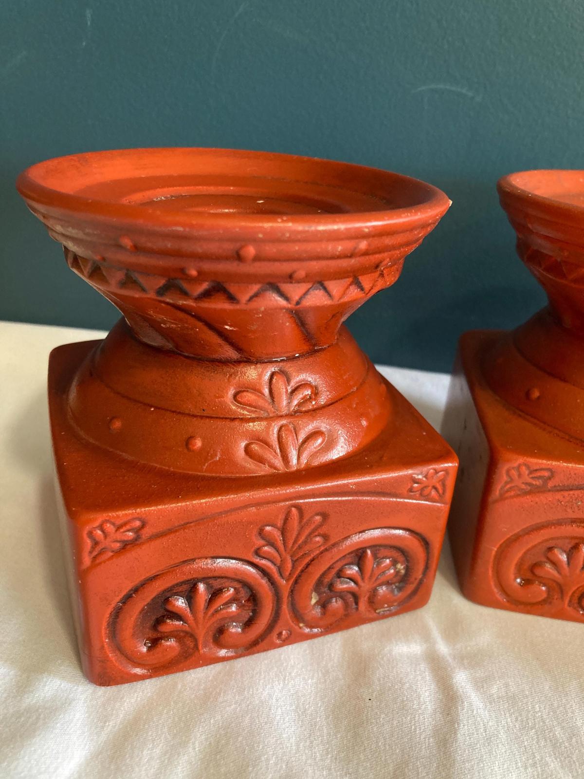 Vintage Brick Red Ceramic Candle Holder Stands, set of 3