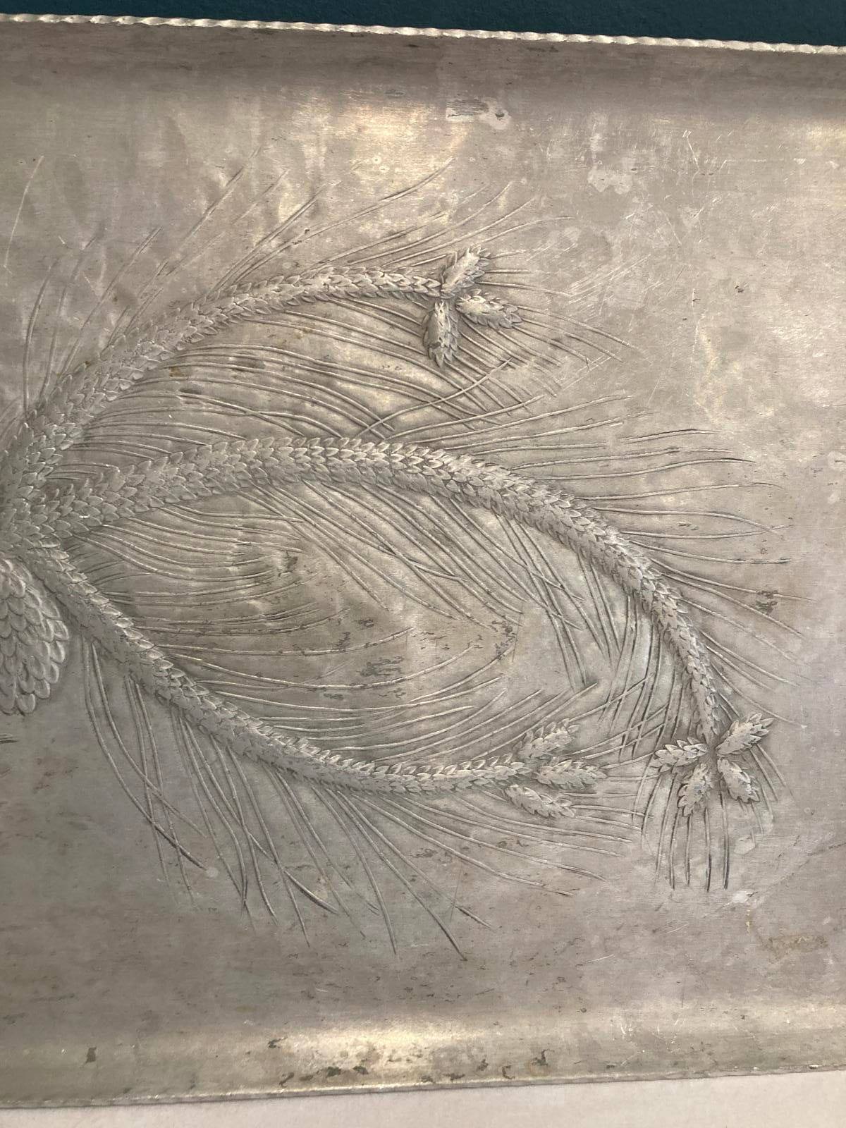 This vintage Everlast forged aluminum tray features a beautifully embossed pinecone and branch design, hammered handles, and a classic rectangular form. A timeless piece of vintage finds, it’s perfect for serving, displaying, or using as a decorative accent. Its lightweight yet durable construction makes it both functional and collectible. A wonderful addition to farmhouse, rustic, or mid-century style homes.