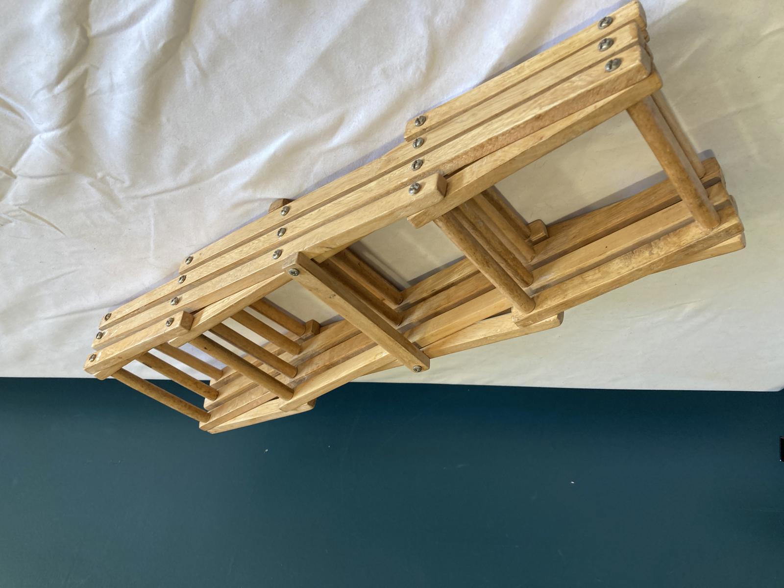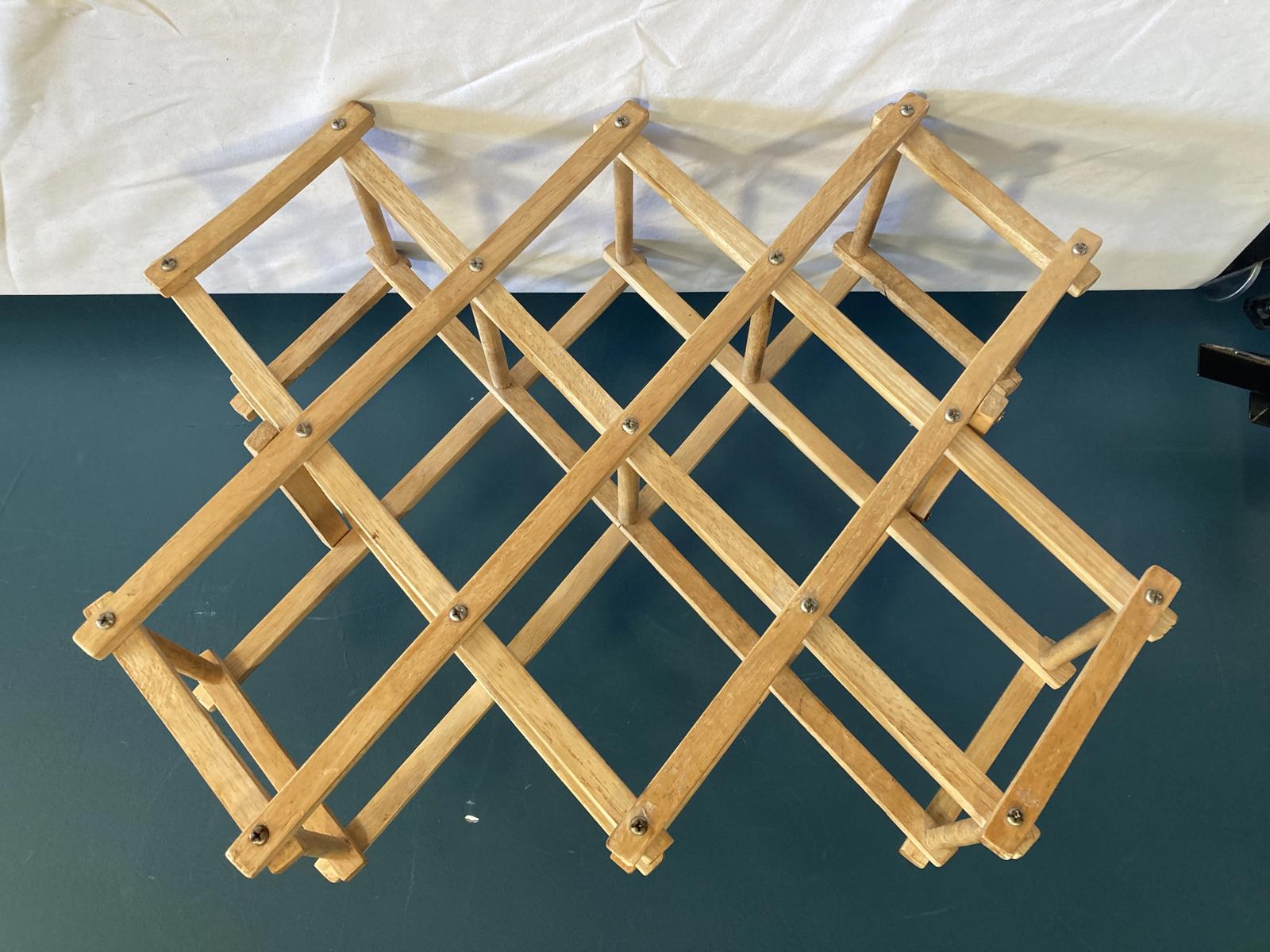 Organize your wine collection with this charming vintage wooden wine rack holder. Crafted from sturdy wood with a collapsible design, it offers a rustic storage solution for up to 8-10 bottles. This vintage finds piece is perfect for wine enthusiasts or as a unique home decor accent, blending functionality with timeless style.
