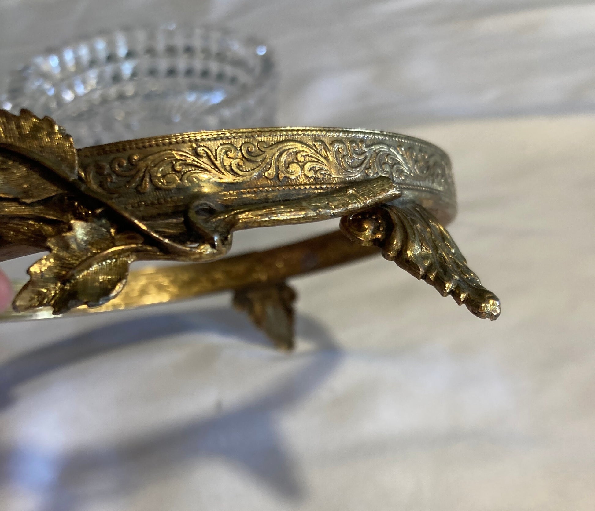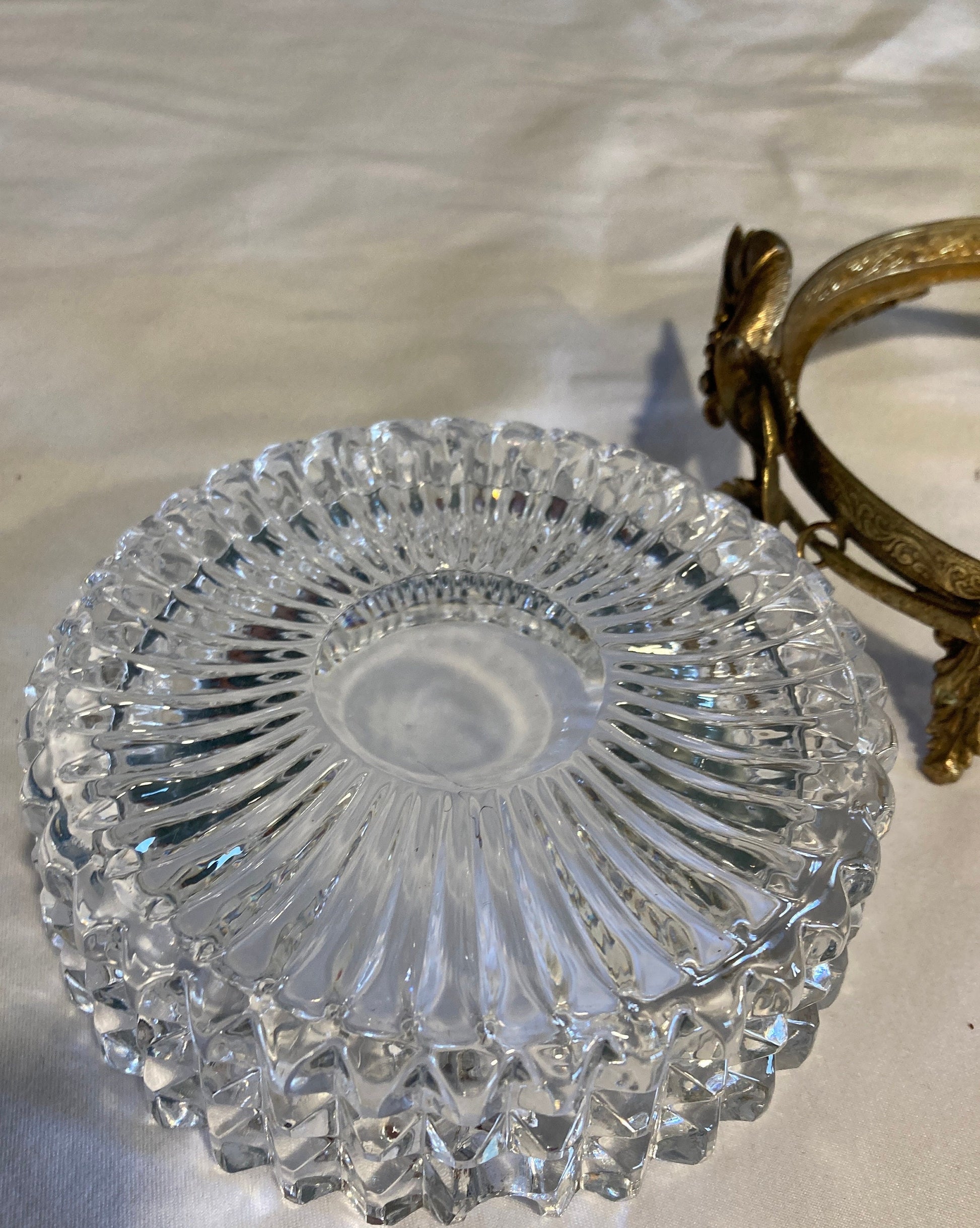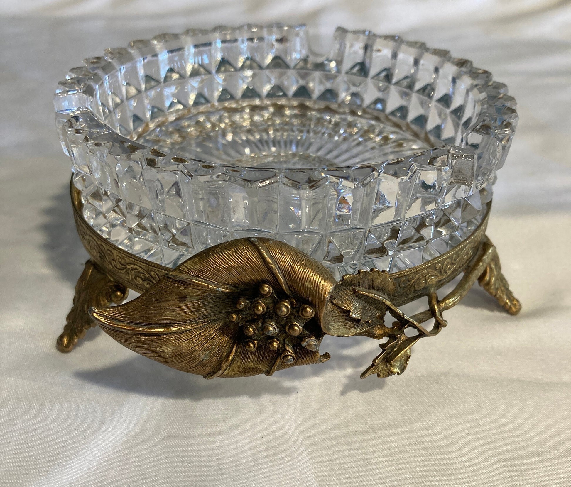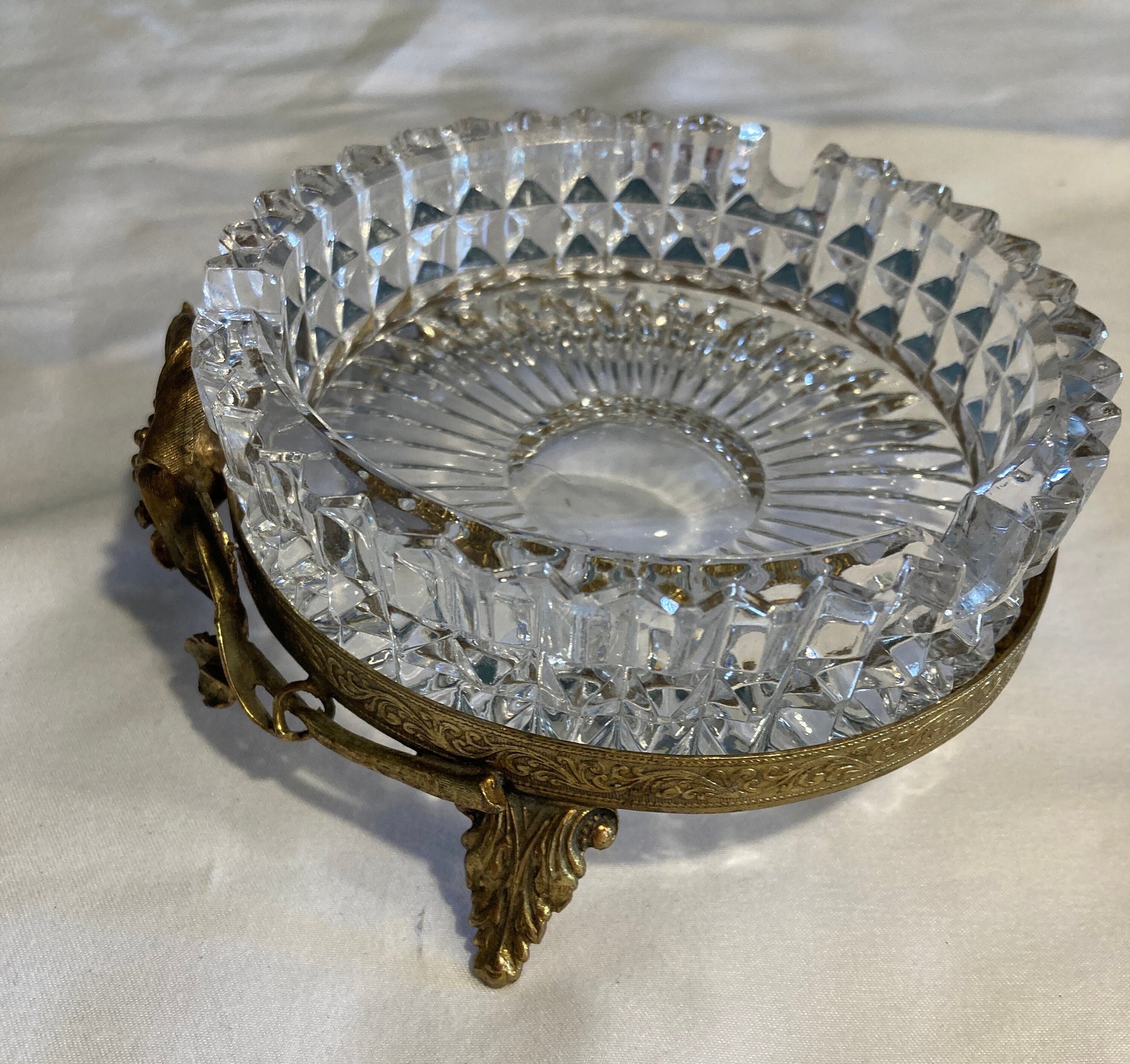 Vintage Glass and Brass Ash Tray or Trinket Bowl