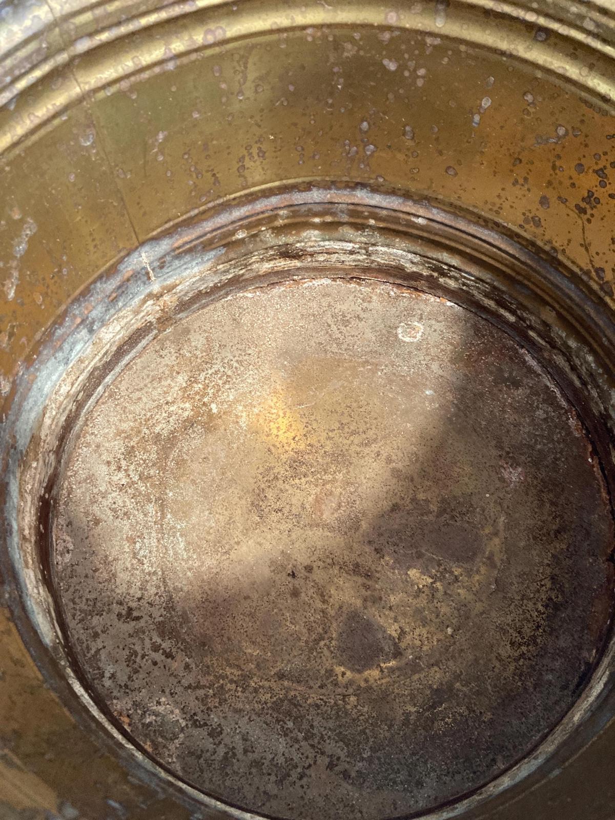 Vintage condition with signs of age including oxidation and dents, which add to its authentic character.