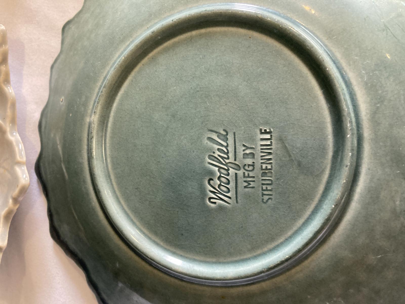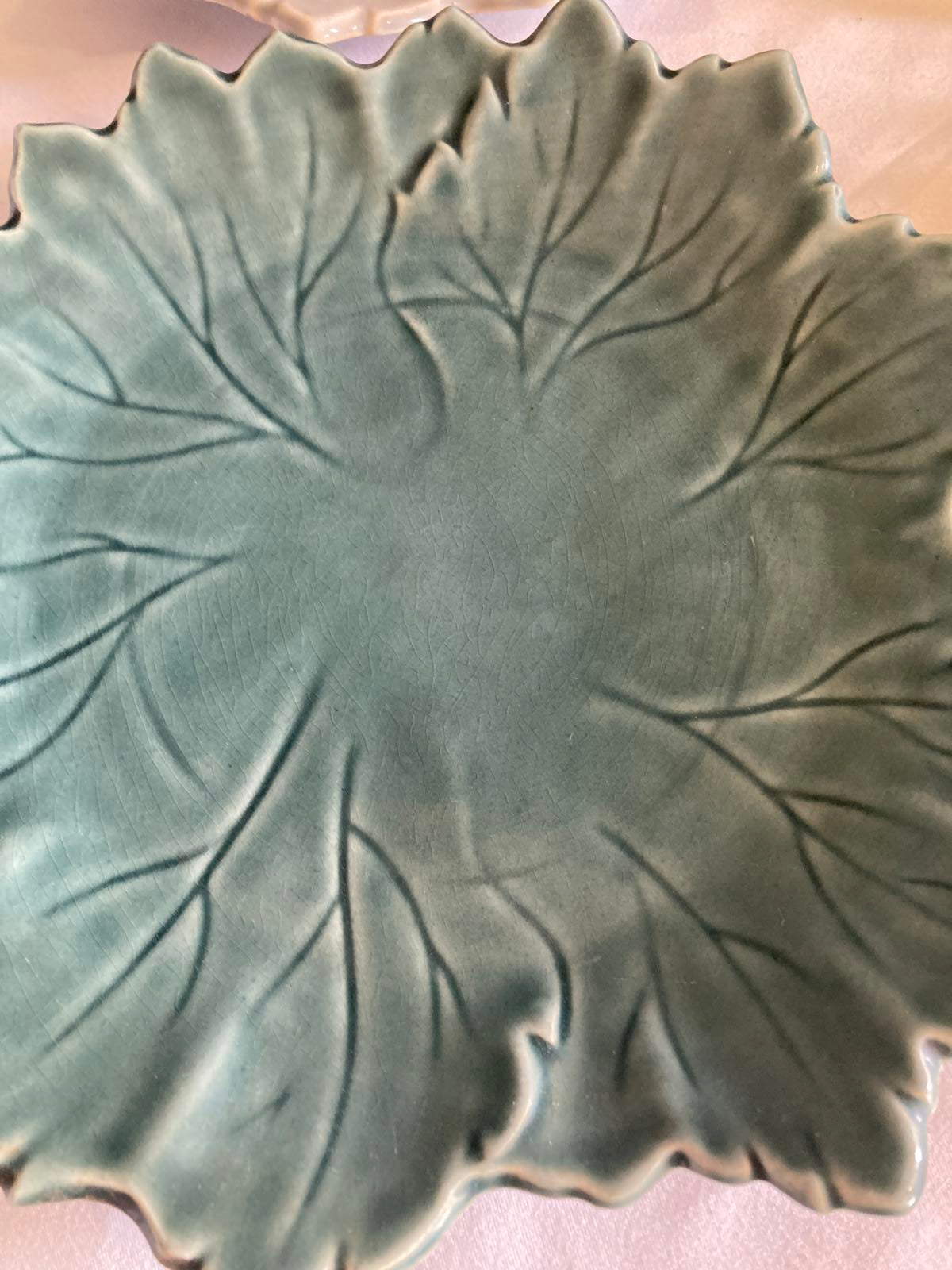 Add a touch of mid-century charm to your table with this delightful set of six vintage Woodfield by Steubenville leaf-shaped plates, crafted in the 1940's. Each plate boasts an embossed leaf design with intricate vein details and a subtle handle, available in beautiful earthy tones: soft gray, warm yellow, and rich greens for a versatile, nature-inspired look. Perfect for serving salads, desserts, or as decorative accents, these glossy ceramic pieces bring organic elegance to any gathering. A standout among vintage finds, they're sturdy, timeless, and ready to elevate your serveware collection.